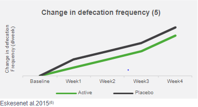 Weekly changes from baseline in defecation frequency (intention-to-treat population). Defecation frequency recorded in subject diaries and reported as days per week with significantly different from placebo group at weeks 2, 3 and 4 (**P<0.01). CFU, colony-forming units 1 billion CFU, n 343, Placebo n 453.